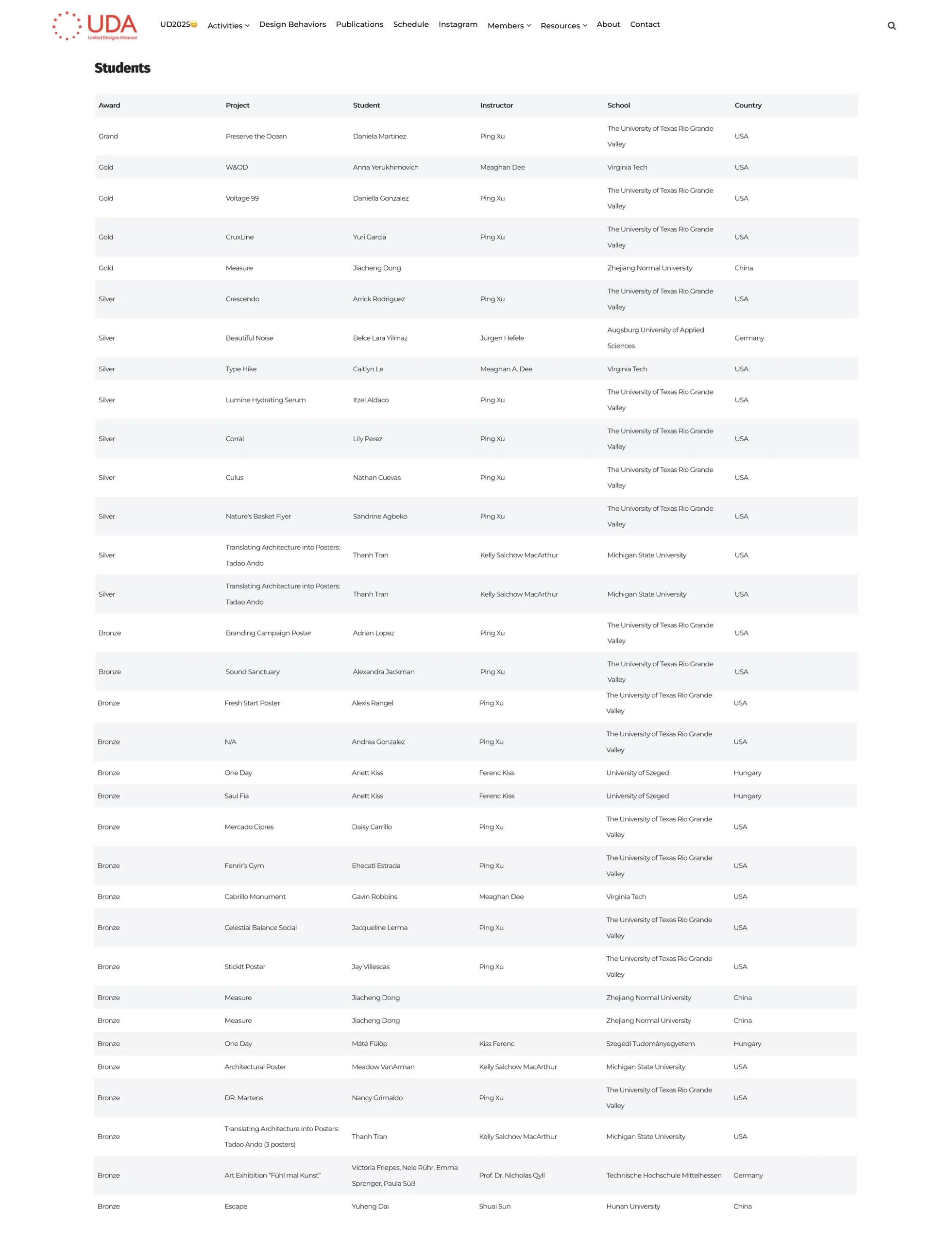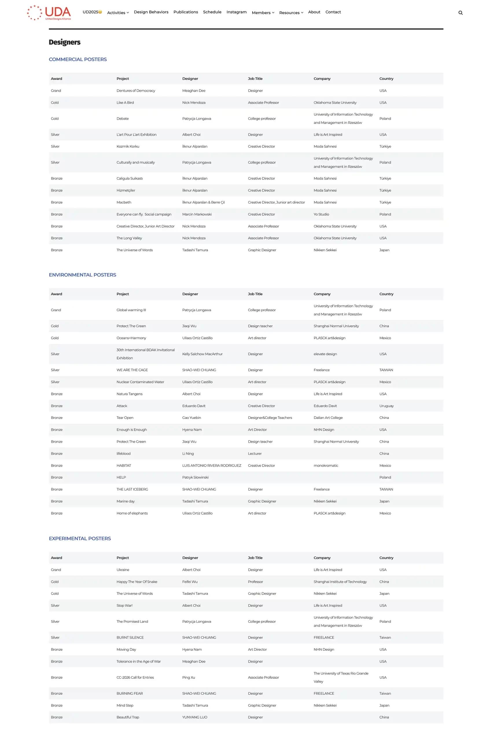 I consistently encourage my students to participate in both national and international design competitions, such as the UDA Poster Competition. In the Spring 2025 semester, students from my ARTS-3333 Print Design class and ARTS-4334 Advanced Graphic Design class earned seventeen international awards: