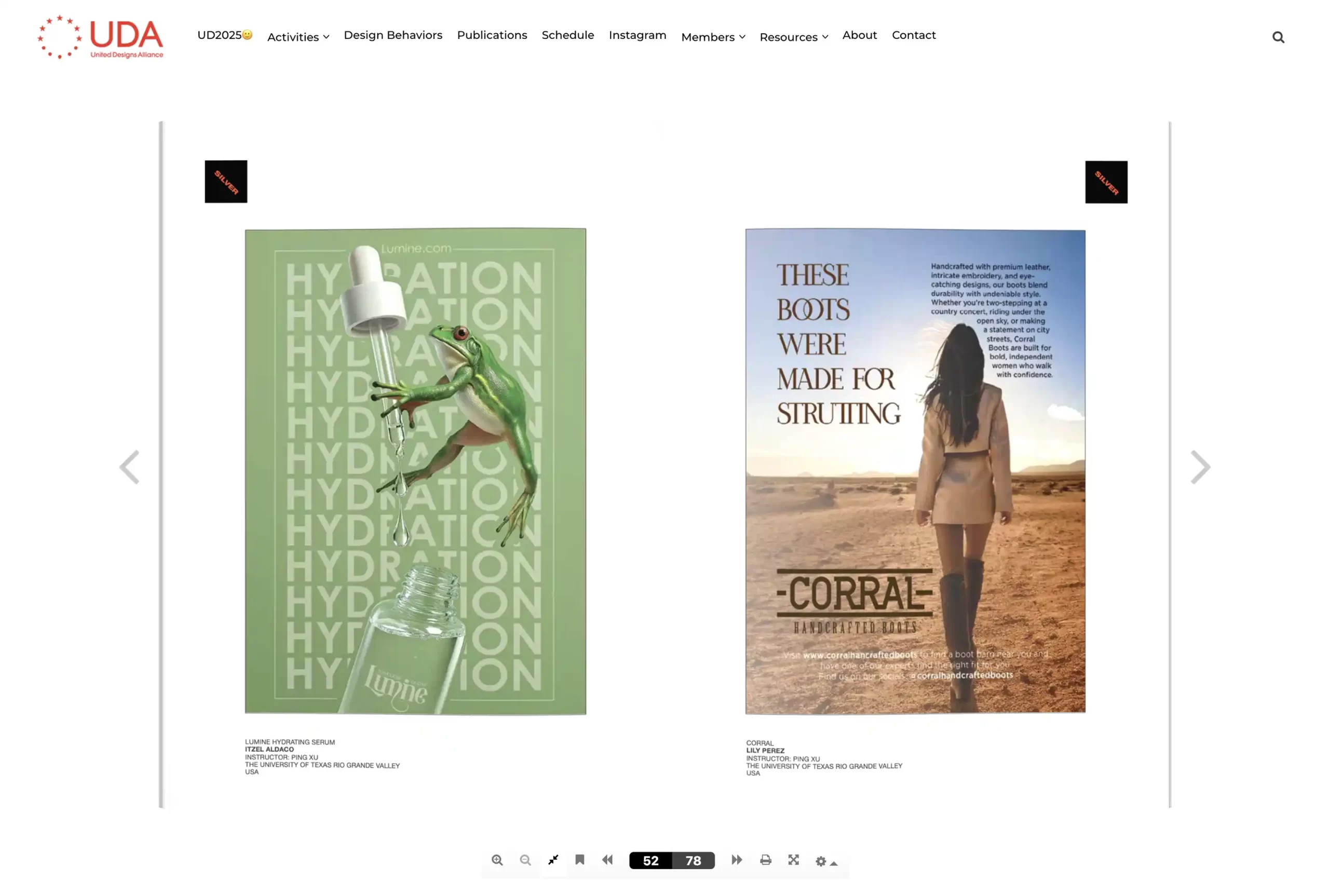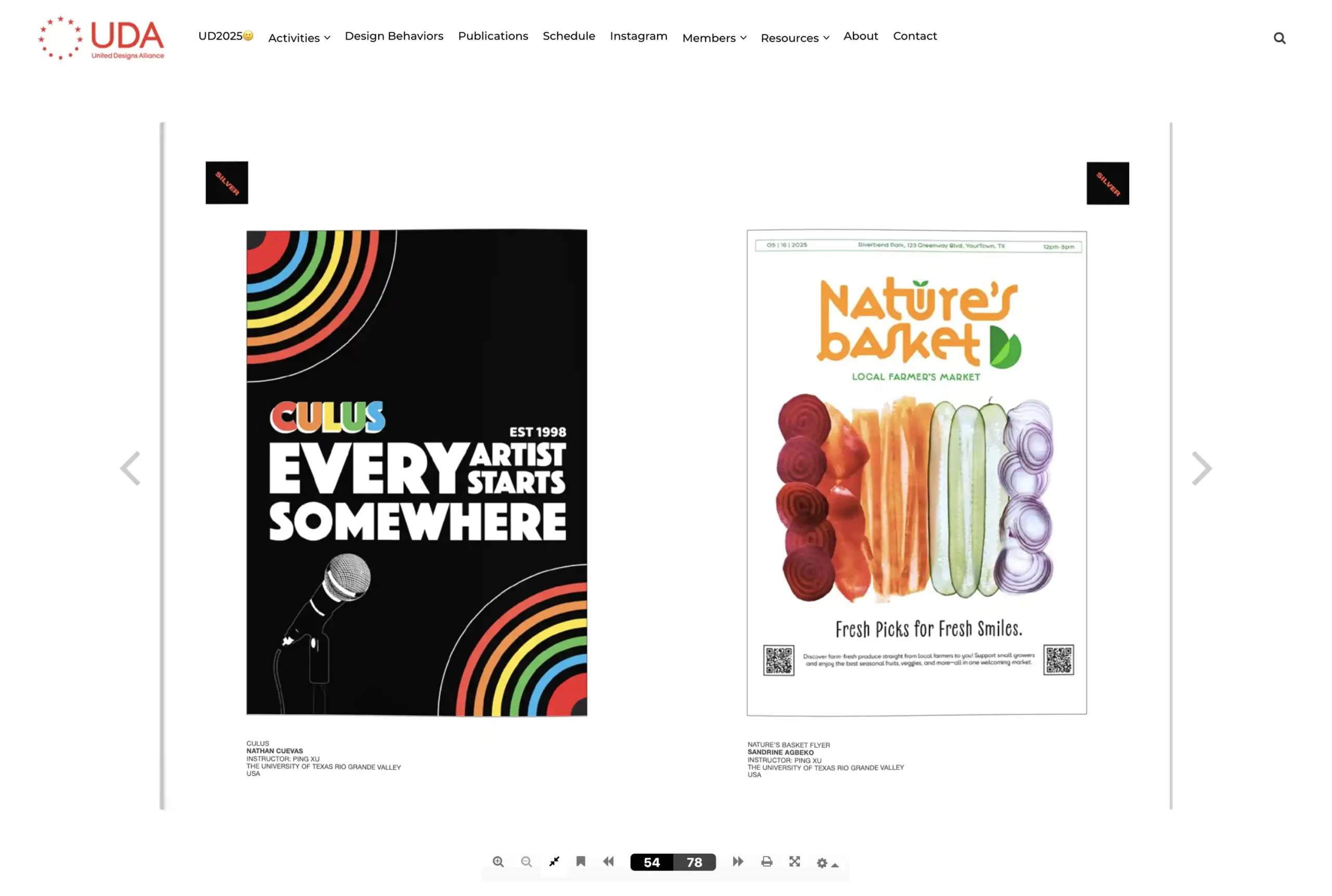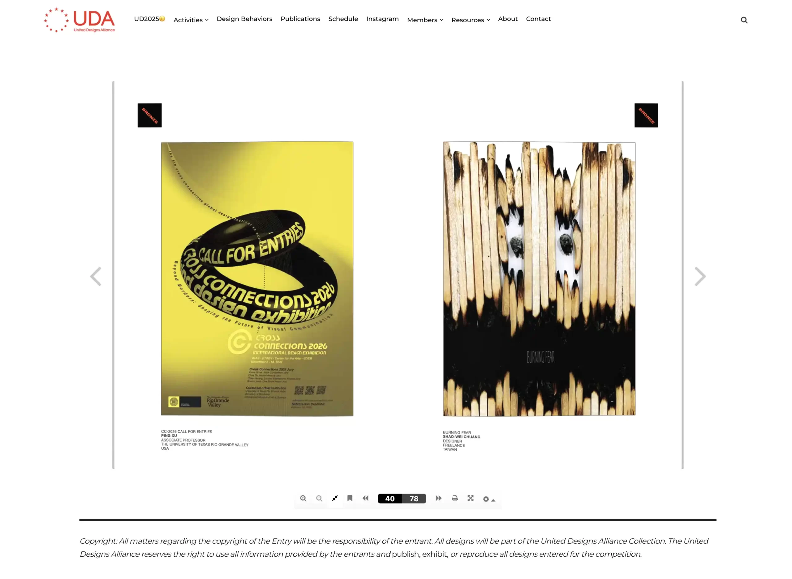 | Competition: UDA Poster Design 2025 Awards (Int’l Design Competition) Award-5: Silver (Student) Award of UDA Poster Design 2025 Competition Winner: Itzel Aldaco Instructor: Ping Xu Course / Semester: ARTS-4334: VCD III (Graphic Design II) / Spring 2025 |