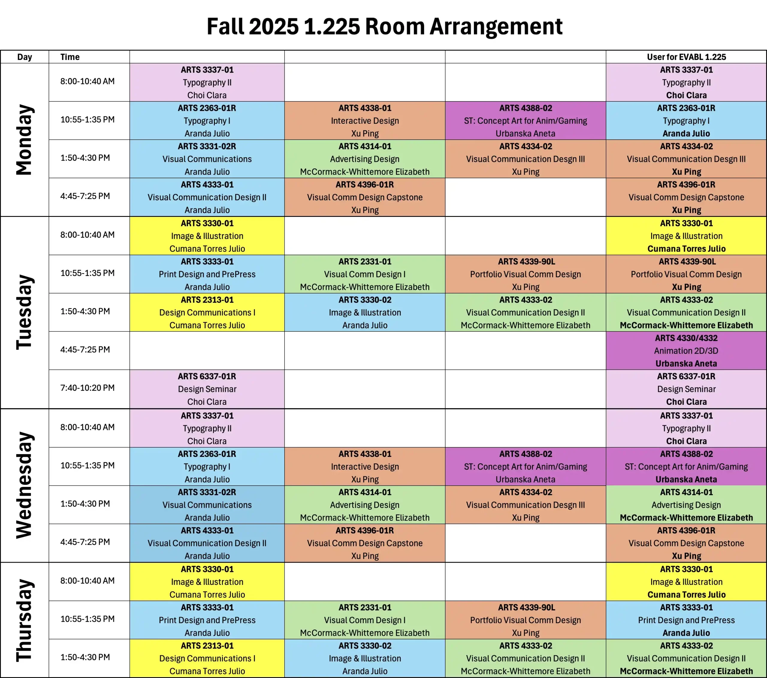 - Access to classrooms, labs, and studios is for enrolled students only
