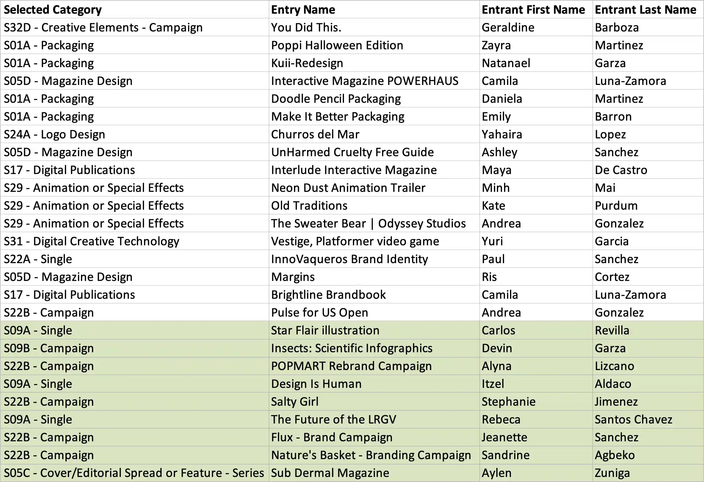 Please find a list of students who have won ADDY Awards in this year’s American Advertising Awards competition. The official awards will be announced on Thursday, February 17, during the ceremony at the Student Union Theater. All VCD faculty members will be in attendance, along with Dean Ward.Awards will be presented in the following categories: Gold, Silver, Bronze, Honorable Mention, Special Judges’ Awards, and Best of Show.